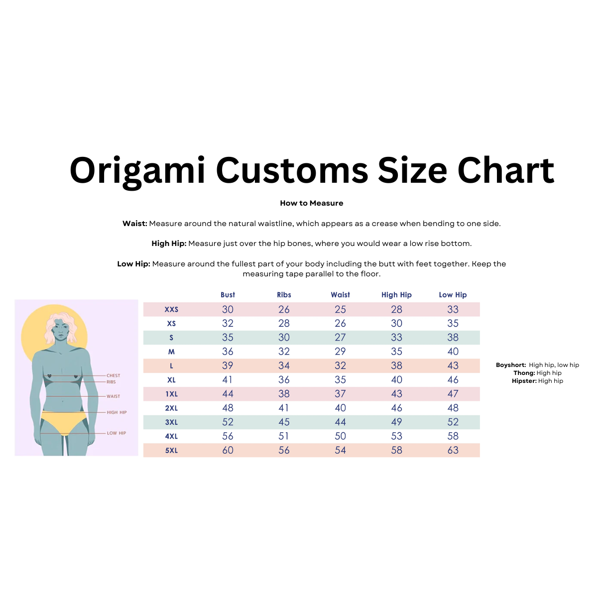 採寸方法はOrigami Customsのフィットガイドをご覧ください。